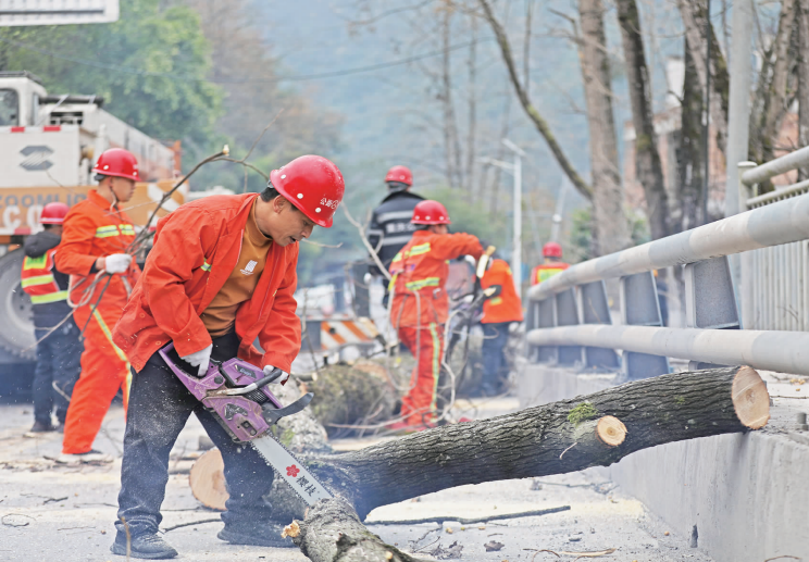县公路管护中心清除隐患行道树