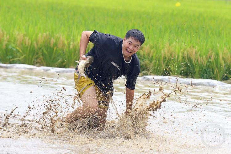 村民们在参加抓鱼比赛。